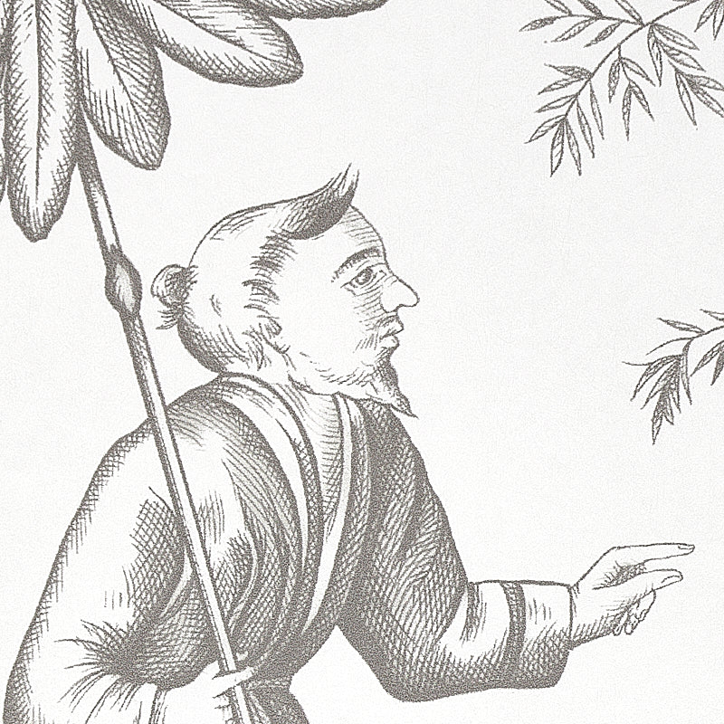 Shengyou Toile is based on a priceless 18th-century document in our archives by court painter Jean-Baptiste Pillement. Hand-engraved, this pattern has rich dimension and is full of delightful surprises.