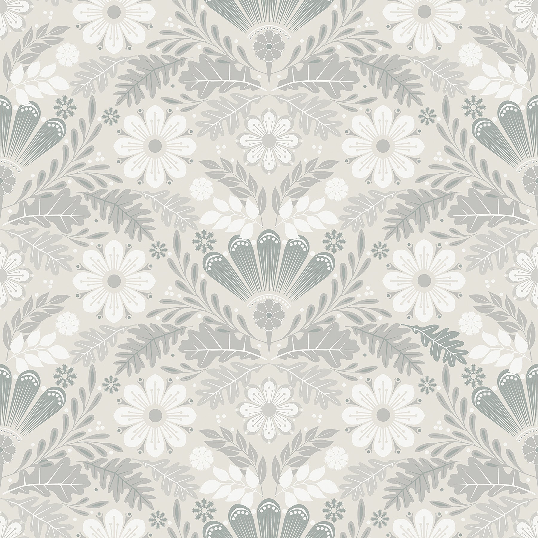 Finch Neutral Woodland Damask Wallpaper - York Wallpaper - 4173-27621