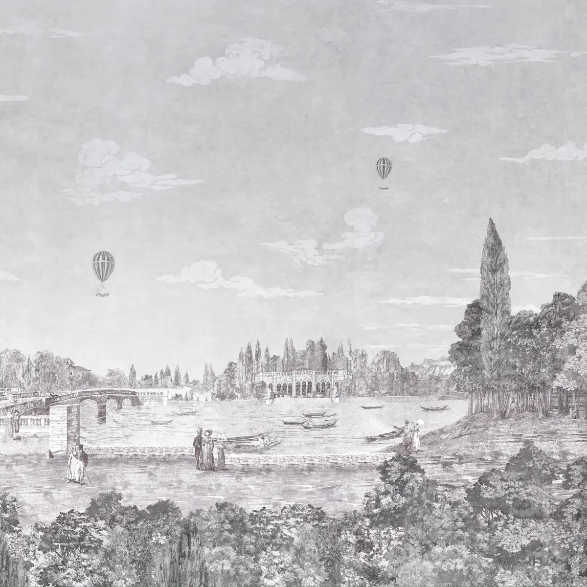 Promenade 4 Panel Set - Grisaille - Schumacher 5018121 Wallcovering