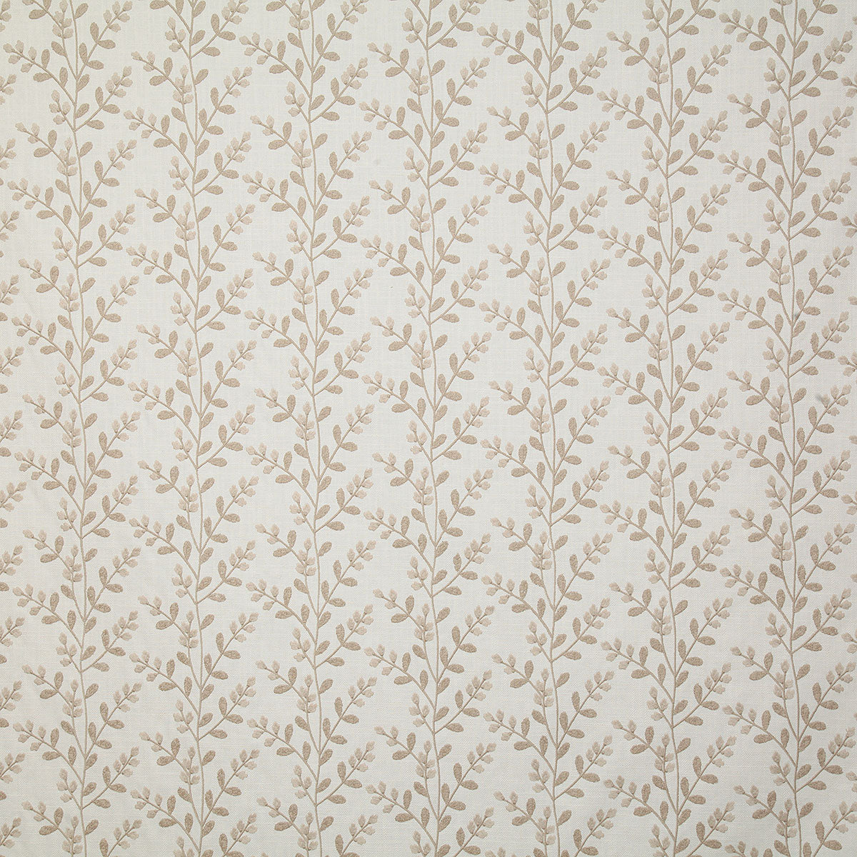 8138-Bronwyn is a multipurpose design. Bronwyn is an all over floral and vine design embroidered on a textural herringbone ground cloth. Bronwyn is woven in a cotton, polyester, linen, and rayon blend with cotton embroidery.