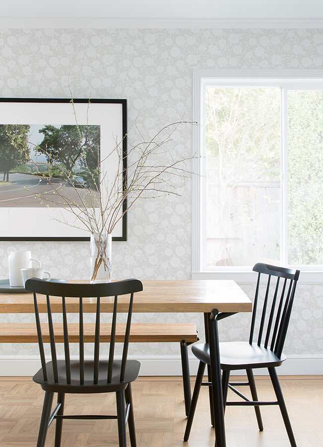 Lizette Light Grey Charming Floral Wallpaper - York Wallcoverings - 4080-15908