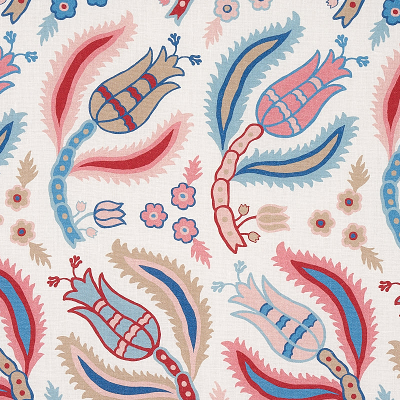 With vibrant, twining Ottoman-inspired vegetation covering nearly every inch of the fabric, sky-and-rose midscale cotton Malabar Vine is an incredible celebration of color and pattern. Part of our East Meets West collection.