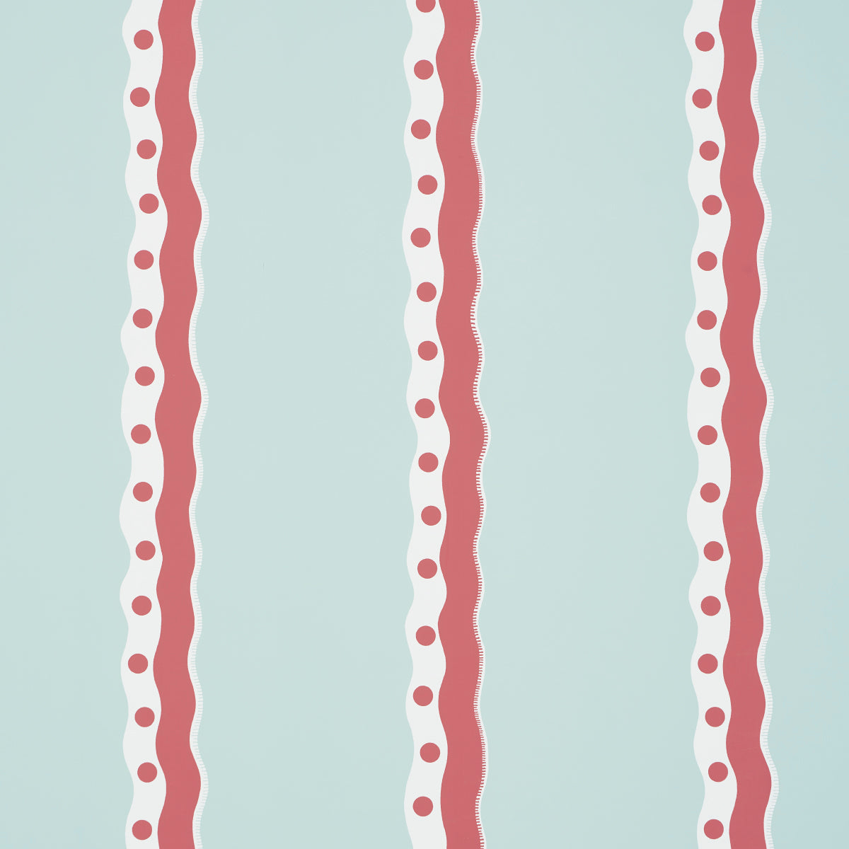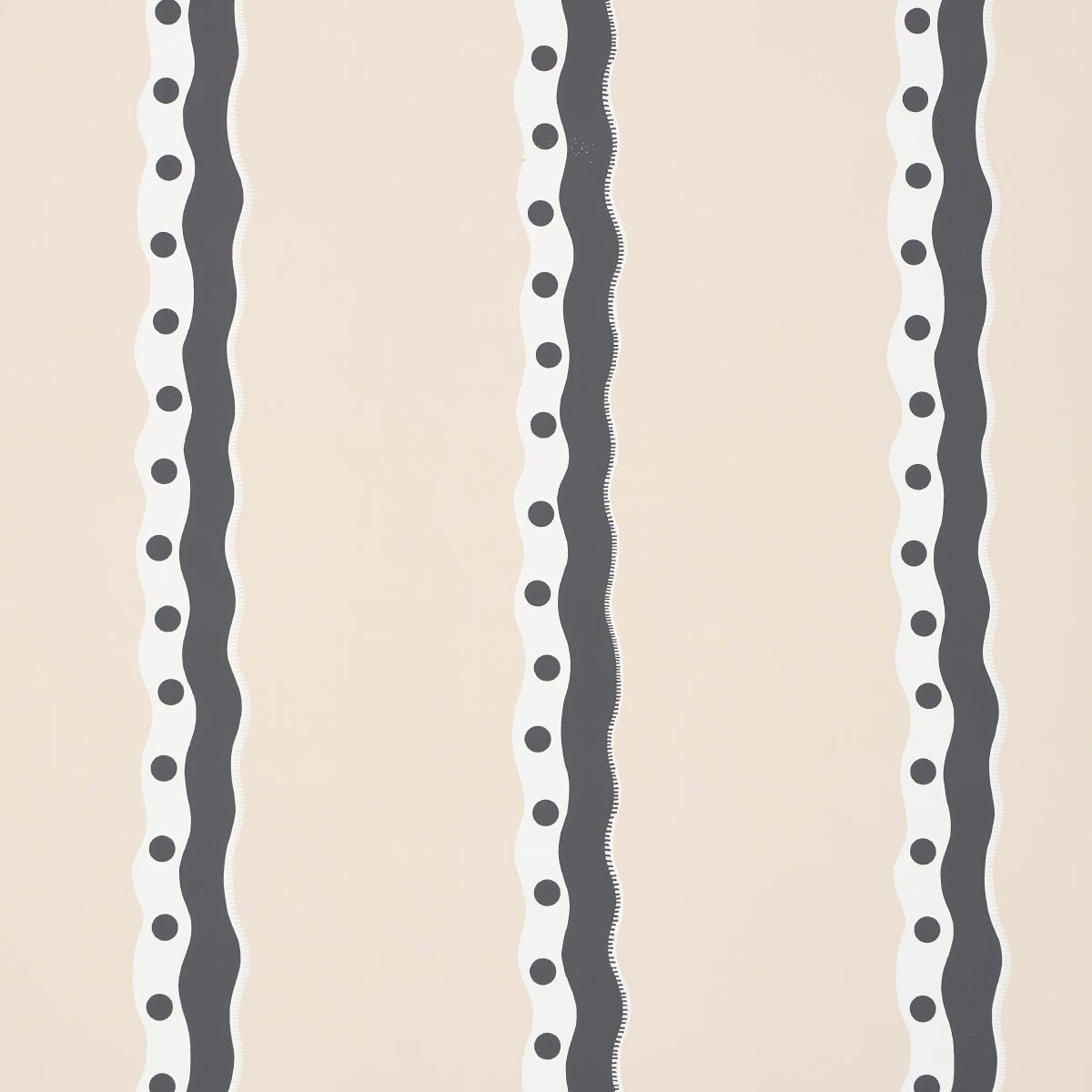 Rousseau Stripe fabric is simple, charming and hard to resist. With its wavy multi-width vertical stripes and rhythmic dots printed on the bias, this graphic medium-scale design adds a lively dimension to pillows, window treatments and upholstered pieces. Also available as a wallpaper.
