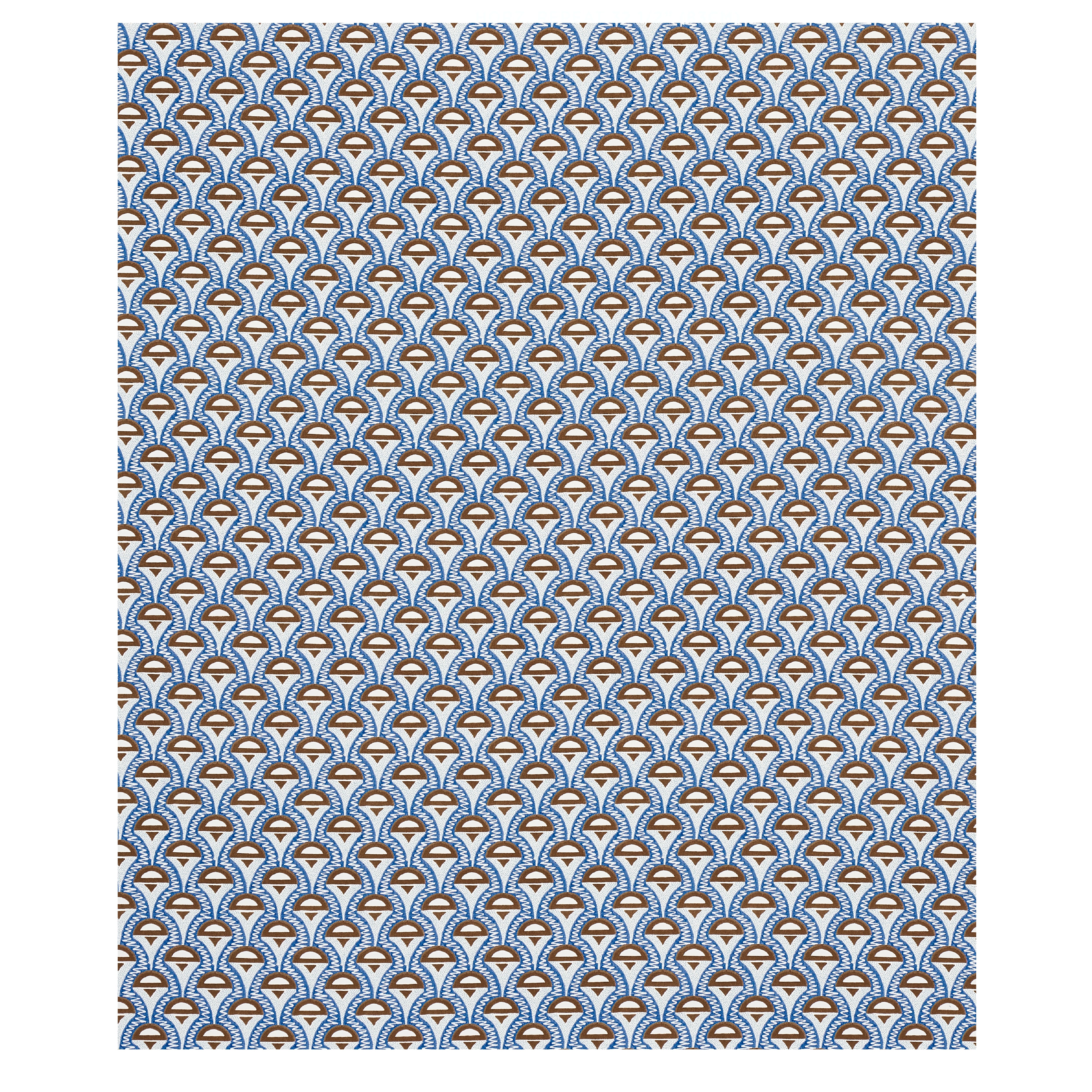 With hand-drawn, irregular zigzags and dots, Abelino is a small-scale, Art Deco-influenced geometric blue-and-brown fabric with a unique artistic flair. Part of our Copacabana collection. Also available as a wallcovering.