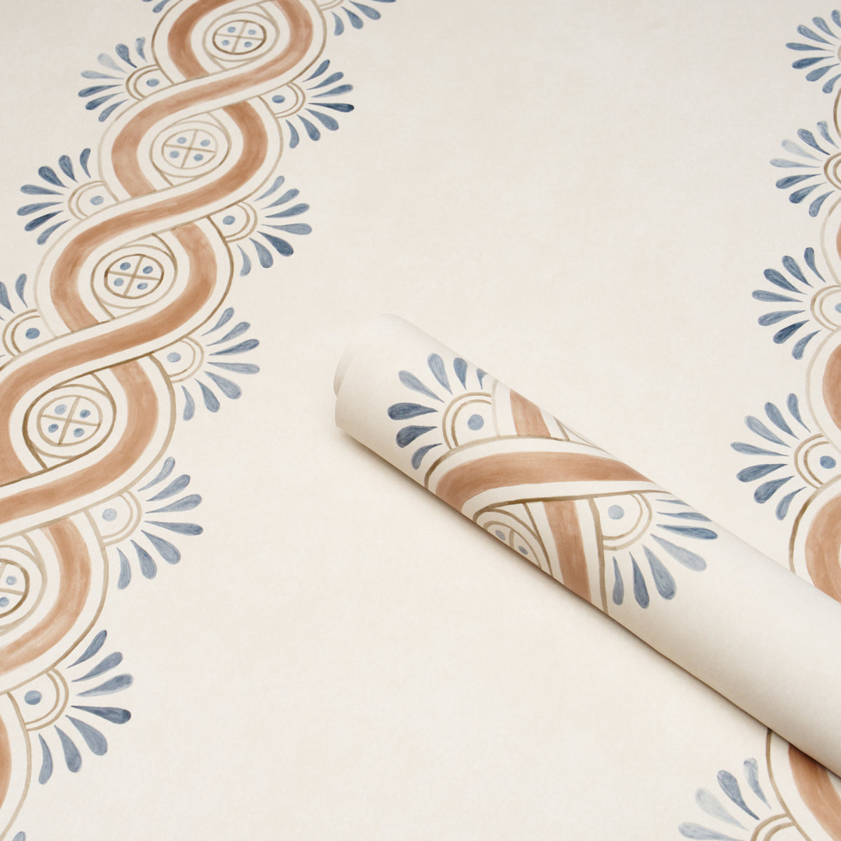 This unique ogee stripe was inspired by ancient frescoes discovered in a French villa. Printed on a mottled ground, Leonidis Stripe is a versatile medium-scale wallpaper design with wonderful depth and an interesting hand-painted look.