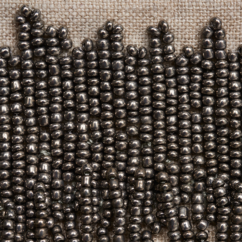 Gleaming hand beaded fringe on a linen ground makes for a glamorous statement without any flash or fuss.