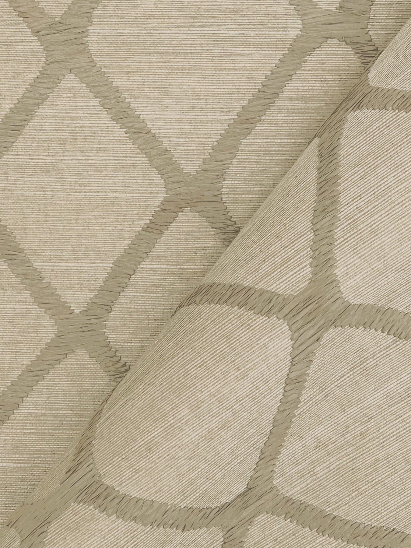 Tonga elevates timeless trellis motifs with hand-hewn diamonds embroidered using paper raffia along a sisal backing. Seen here in striking black and white. This Tonga Wallpaper measures approximately 36 inches wide by 24 feet long, measuring approximately 72 square feet per roll. The rich global heritage of timeless relics and hand-crafted naturals are artfully blended in this curated collection of culturally inspired designs.