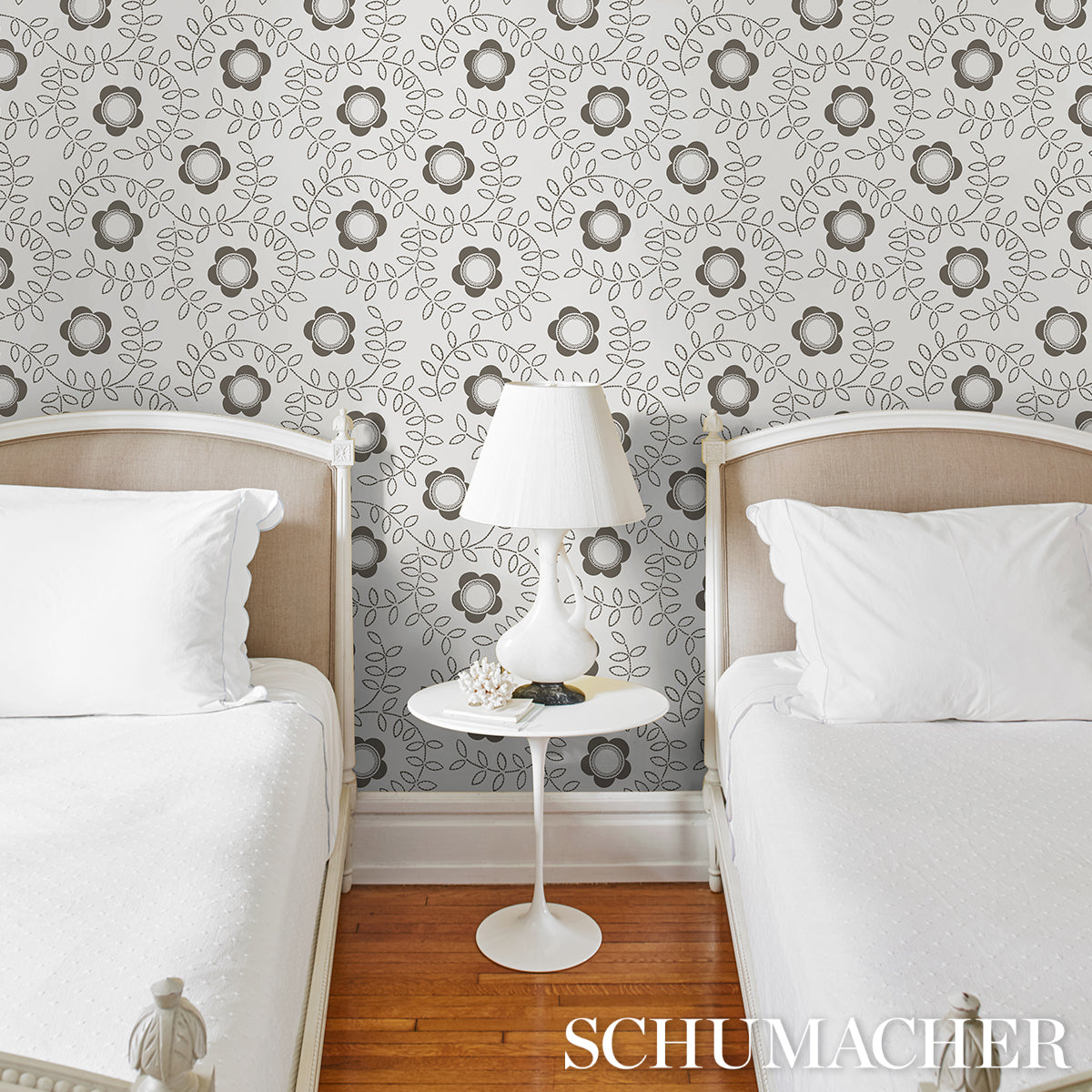 Tudor Rose - Charcoal White - Schumacher 5015100 Wallcovering